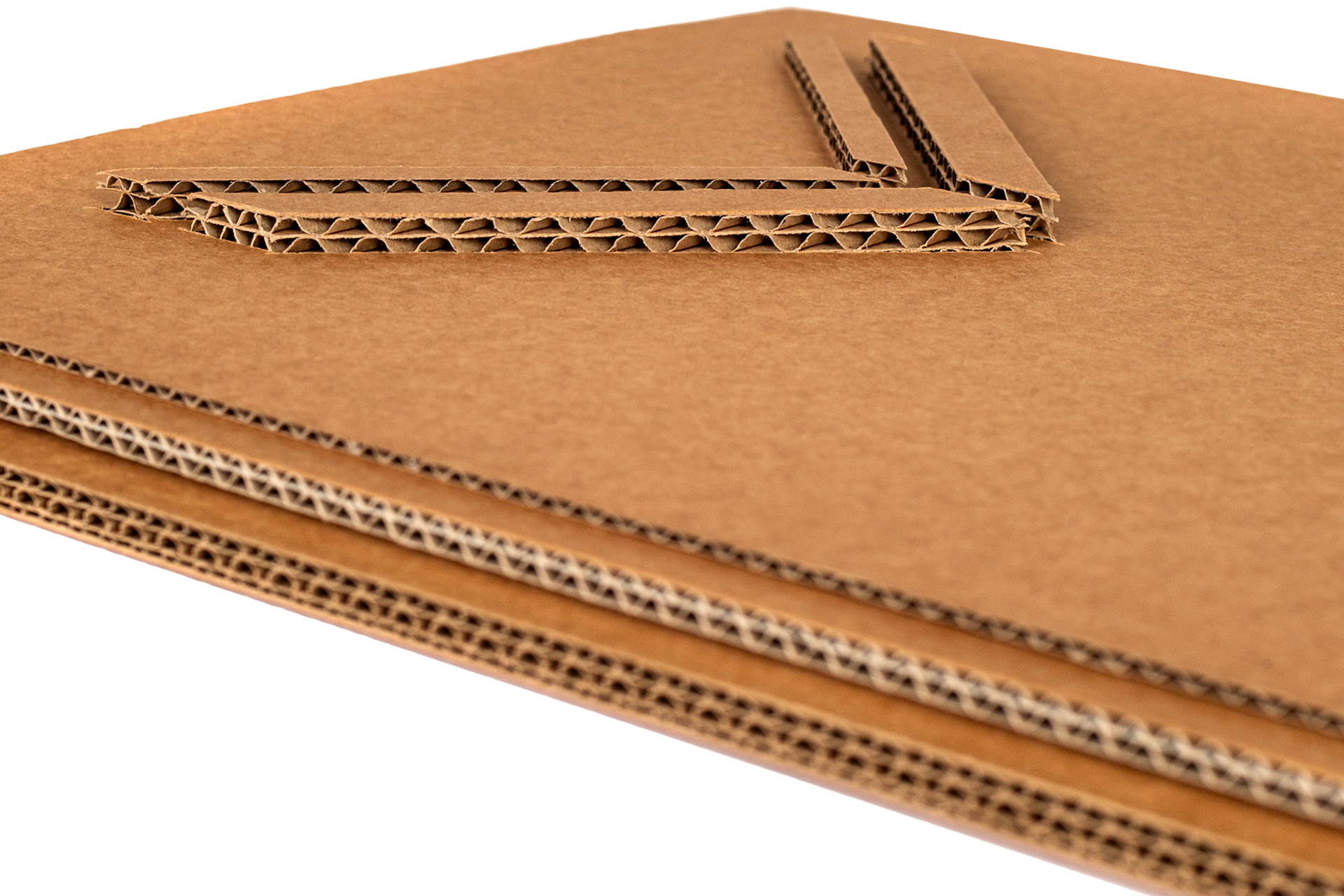 Für höhere Stabilität wird zweiwellige Wellpappe verwendet, bei der zwei Wellenlagen zwischen drei Papierbahnen liegen.